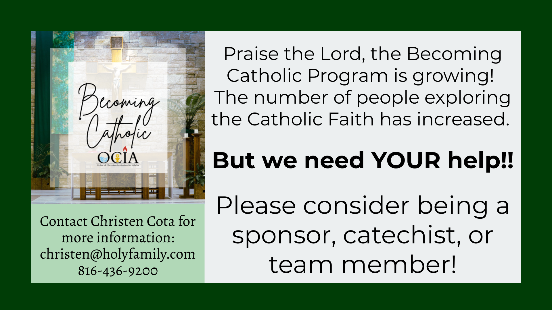 The latest news and announcements for Holy Family Catholic Church now live here. Check back to see the latest of what's going on in the Parish.